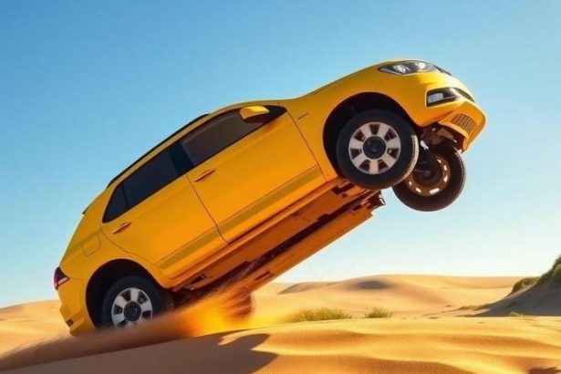 Uma Volkswagen Brasília de cor amarela foi flagrada atravessando as dunas de…